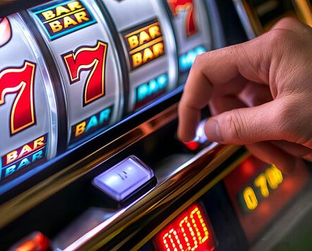Golden slot machine wins the jackpot 777 on on the background of an explosion of coins and retro frame. Vector illustration Slot Kesederhanaan Bermain: Mengapa Slot Online Mudah Dipelajari